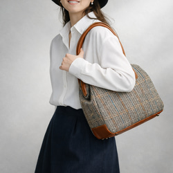 採用優質牛皮、哈里斯花呢羊毛和植物鞣製真皮(牛皮)拼接而成,打造經典優雅的外觀。包身正面飾以復古金屬配件,更添精緻韻味,賦予包包沉穩迷人的氣質。 LINEBREAK