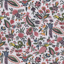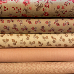 「Joie de Vivre(ジョワ・ド・ヴィーヴル)」は、19世紀初頭のフランスのプリントを柔らかく繊細に解釈した作品で、古き良きフランスの応接室や女性のドレッシングルームを彷彿とさせます。大きくてカラフルなフローラルプリントは、フローラル・ファジー・カッティングに適しており、美しいアップリケや六角形模様を作るのに最適です。