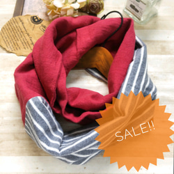 シャーリングギンガム×スラブダブルガーゼ◆パッチワークねじりシングルスヌード(レッド系×ベージュ)