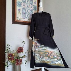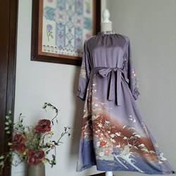 ★着物リメイク/訪問着/正絹/ノースリーブ/ギャザー/ワンピース/一点物★