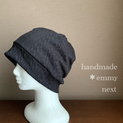 送料無料*handmadeアラン風ニットワッチキャップ〈チャコールグレー〉ケアキャップ ケア帽子 医療用帽子