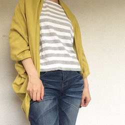 採用國產雙層紗布製成的可愛輪廓的披肩形開襟衫。它由一整塊布料製成,展開後就變成了一個正方形。有些人可能會驚訝地發現沒有袖子,但這件形狀像飛鼠開襟衫,袖子與身體相連,賦予它獨特的輪廓。 (形狀像蝙蝠袖。)