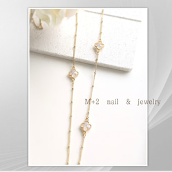 72cmの高級感あるゴールドチェーンに、ゴールドのレース風モチーフ(約2cm)とリーフのモチーフをクロスさせました**