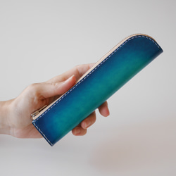 タンニン鞣しのヌメ革を手染めでグラデーションをつけて染めた