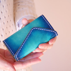 -レザー名刺入れ ヌメ革仕様 青 BL 【海の色】-