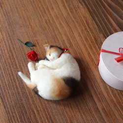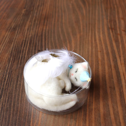 ふわっふわの羊毛フェルト製まっ白猫さまが、お供え餅になりました。