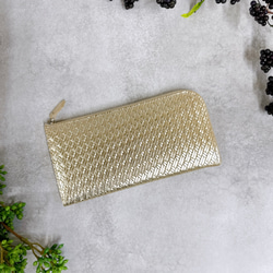 薄くて軽くて大容量なL字長財布 14枚カードポケット シルバー箔