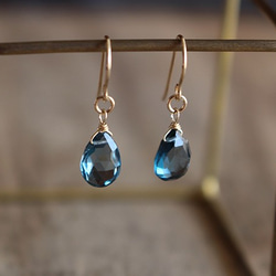 [歐] 海藍寶石<水滴形>耳環 (K14GF)