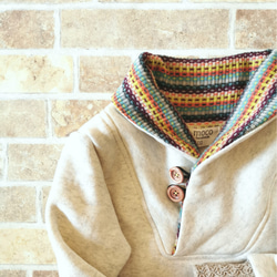 衿と肩部分は、身頃と同じくオフホワイトのリブ仕様。