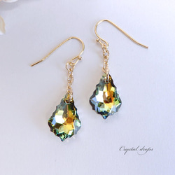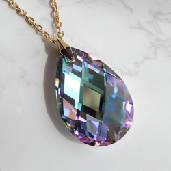 超大…華麗、迷人的水滴形、高品質水晶耳環(耳環)Aurora,非常適合獨奏,Kiwa 水晶玻璃