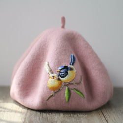 松鼠與莓果刺繡貝蕾帽 罌粟深紅 #Dark Poppy Red【可改帽色】90%羊毛 貝雷帽/畫家帽/帽子/Beret