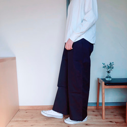 定番のワイドパンツをロング丈で作りました。