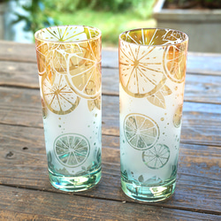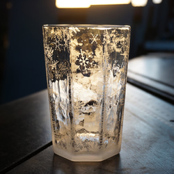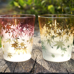 我們使用傳統工藝[江戶切子]中使用的蓋玻璃來製作一個鑲嵌著秋葉的杯子。白色部分為磨砂玻璃,反映內容物的顏色。根據您倒出的飲料的顏色,您可以享受各種口味(最後一張照片為倒出的橙汁)。