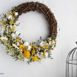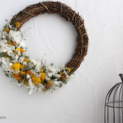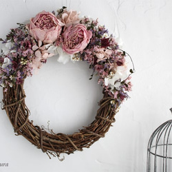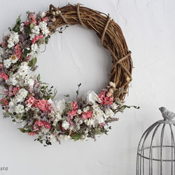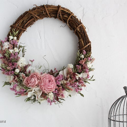 優しい色合いのドライフラワーリースです。