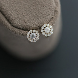 K9金 華やかで華奢なジルコニア石ラウンドピアス Earrings