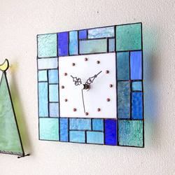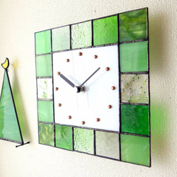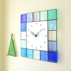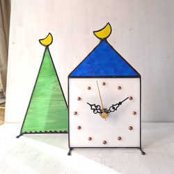 [森の時間] ステンドグラスの掛時計/置時計・モザイク/24㎝