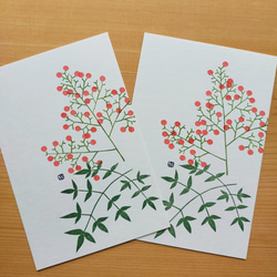 no.34『ツバキ』・季節の草花で彩る手捺し原画ポストカード(2枚入り)