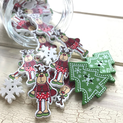 トナカイの表情も可愛らしくクリスマスにピッタリのボタンです🎄沢山入っていて嬉しいです。娘達の幼稚園名札のリボンに使います。