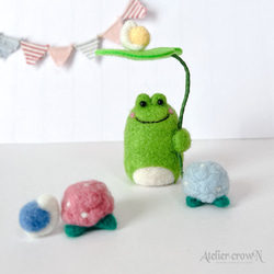あじさいやカタツムリに魅了され、カエルファミリーに加えて、こちらもお願いしました。特にあじさいの花びらの作り方の繊細さに絶賛です。