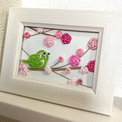 春を感じる作品に目が留まり、購入させていただきました。小さいフレームの中に紅梅とメジロの色合いがセンスよく丁寧に作られ感激でした。