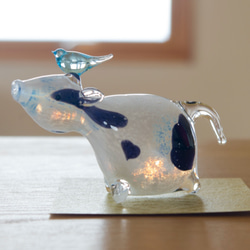 とても可愛い子牛と青い鳥さんです(o^^o)♪