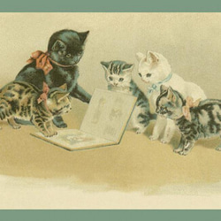 母猫と子猫達が楽しそうに見ているのはアルバムでしょうか?