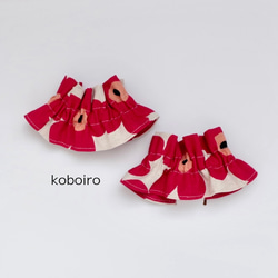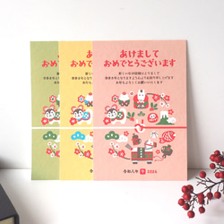 写真よりも実物は落ち着いた赤色です。明るく賑やかなデザインが新年の挨拶にぴったりです。ありがとうございました。