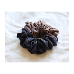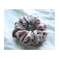 このシュシュは以前購入した色に、バイカラーで淡い紫のような色がプラスされていて、さらにいろんな服に合いそうです。
