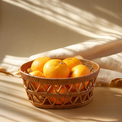 小ぶりで、とてもかわいいかごが届きました。とてもしっかりしていて持ちやすく、入れられたみかんも嬉しそうに見えます。