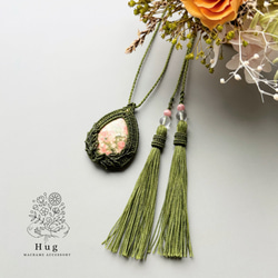 ピンクのお花畑のような大変美しい色と模様のユナカイトに、丁寧に編み込まれたマクラメデザインが映える素敵なネックレス(*´▽`*)華やかさと可愛らしさのある作品でとても気に入りました。