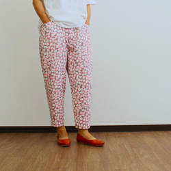 シンプルな柄に淡いピンクで、無地のシャツには良いアクセントになるパンツですね。