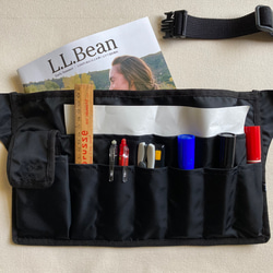 ペンやらハサミやら文房具を頻繁に使う仕事柄と、使いたい時にすぐ使いたい、そしてすぐどこかに置き忘れるからすぐ仕舞いたいという性格上、更に斜めがけバッグだと肩が凝るため、こういうウエストバッグが必須でした。今まではちょっとしたウエストバッグにカラビナやらアウトドアのポーチやらを引っかけて使っていましたが、ついに見つけました!しかも、ハンコや鍵なども吊り下げていたため、別注でフープを付けていただきました!ハサミを入れるポケットの底に敷いて擦り切れから保護する用にフープ作った残りの端切れまで入れていただくという心遣い…!本当にありがとうございます!!ポケットが沢山、しかも大から小、フタ付きまであるので、めちゃくちゃ良いです♪
